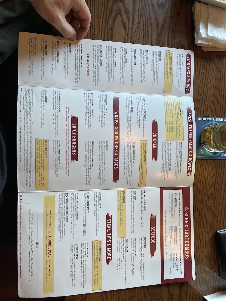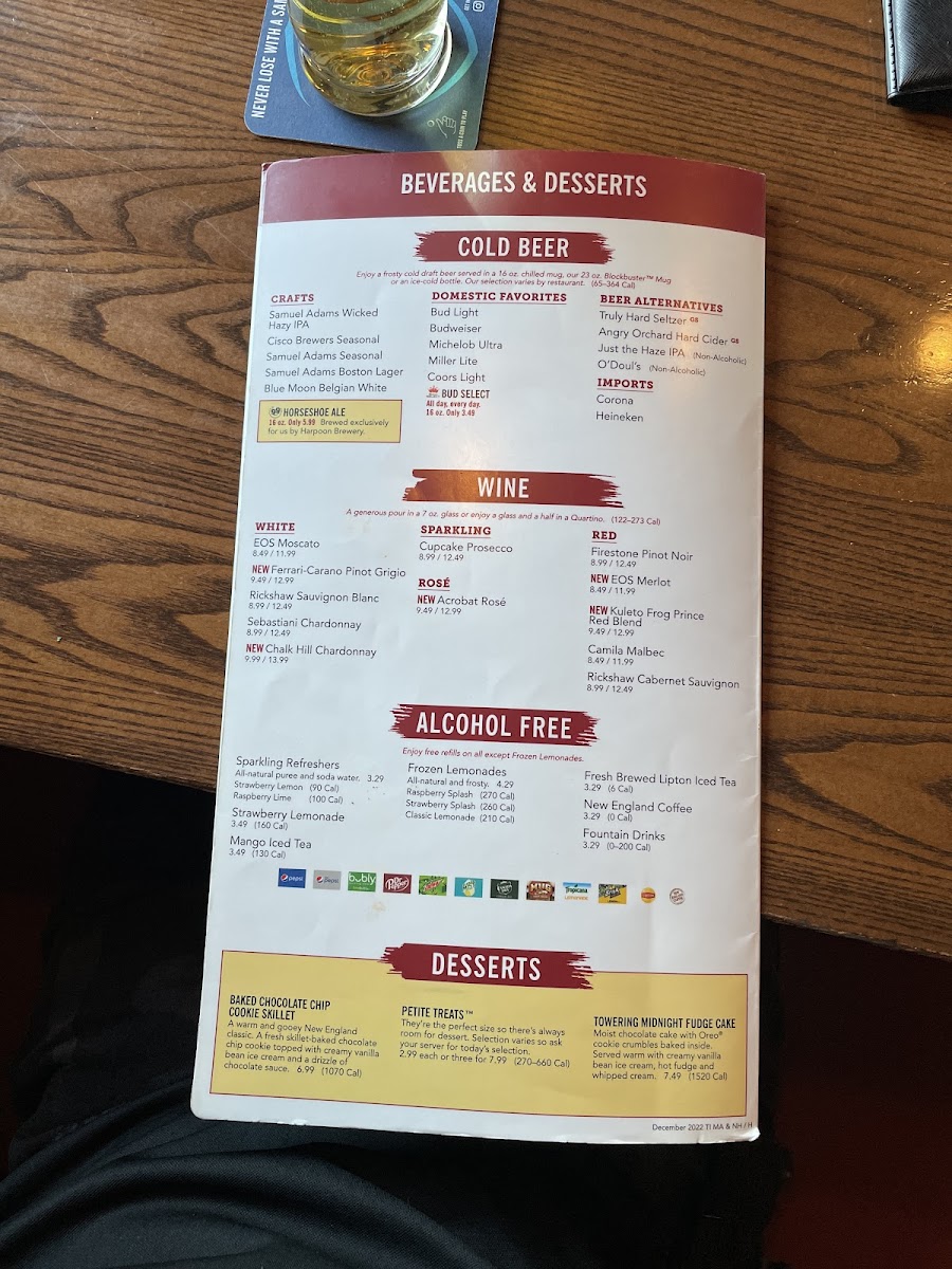 99 Restaurants in Foxborough, MA, offers a warm blend of New England charm and classic American pub fare, crafting a menu that appeals to both casual diners and food enthusiasts. The winter seasonal highlights stand out—especially the Boom Boom Shrimp, golden-fried shrimp coated in a zesty, creamy sauce finished with sesame seeds, and the Big Bar Pretzel, a giant Bavarian-style pretzel served with rich queso sauce. For hearty appetites, the Prime Rib Dinner is a must-try, featuring a perfectly slow-roasted 16 oz. USDA Choice cut, paired with creamy horseradish and au jus, offered on weekends. The Baby Back BBQ Ribs are tender and fall-off-the-bone, slow-cooked and basted with savory sauce. Complement your meal with refreshing non-alcoholic beverages like Pure Leaf Unsweetened Iced Tea or classic IBC Root Beer. Guests appreciate the consistent quality, friendly service, and generous flavors, making 99 Restaurants an inviting spot for satisfying, well-rounded American dining experiences.